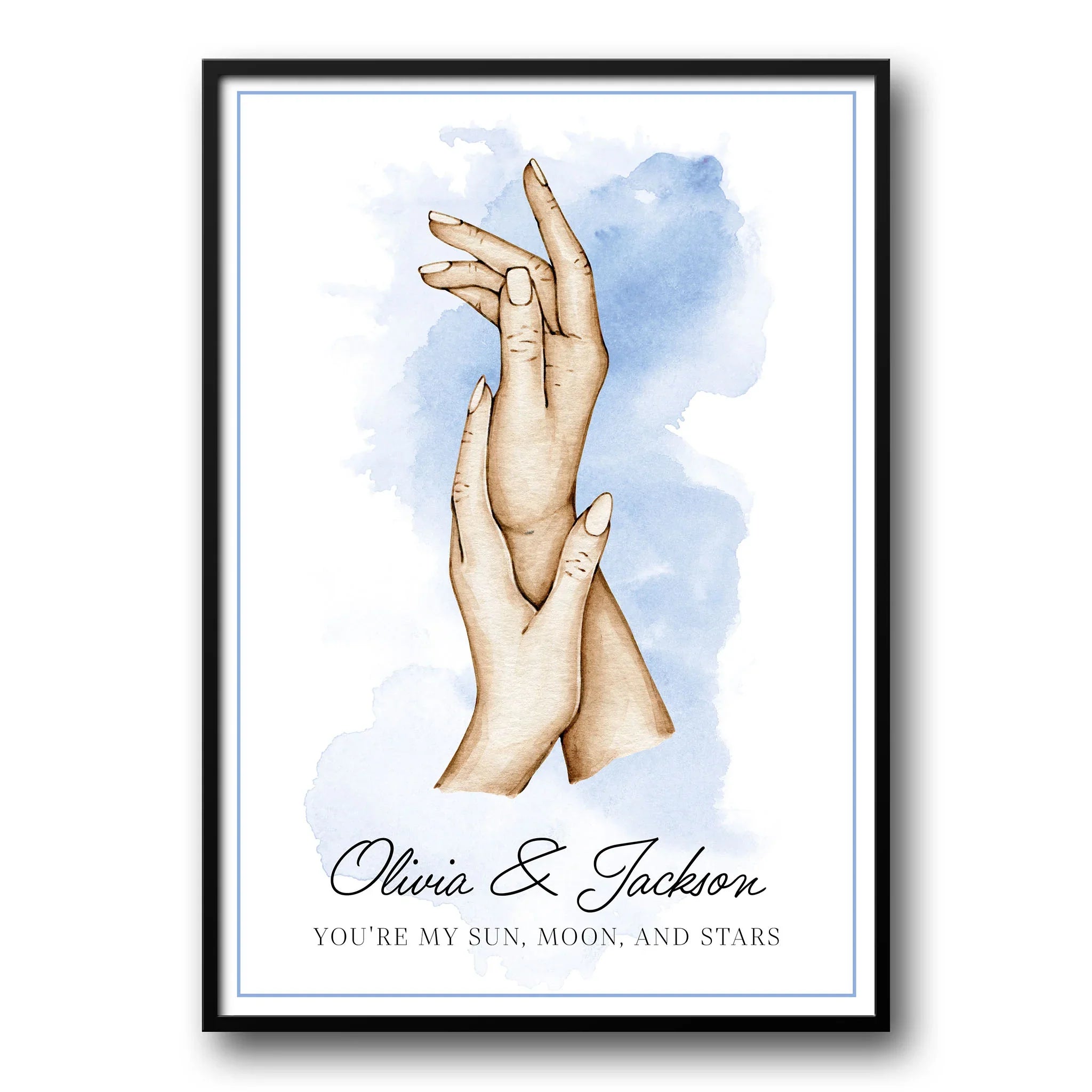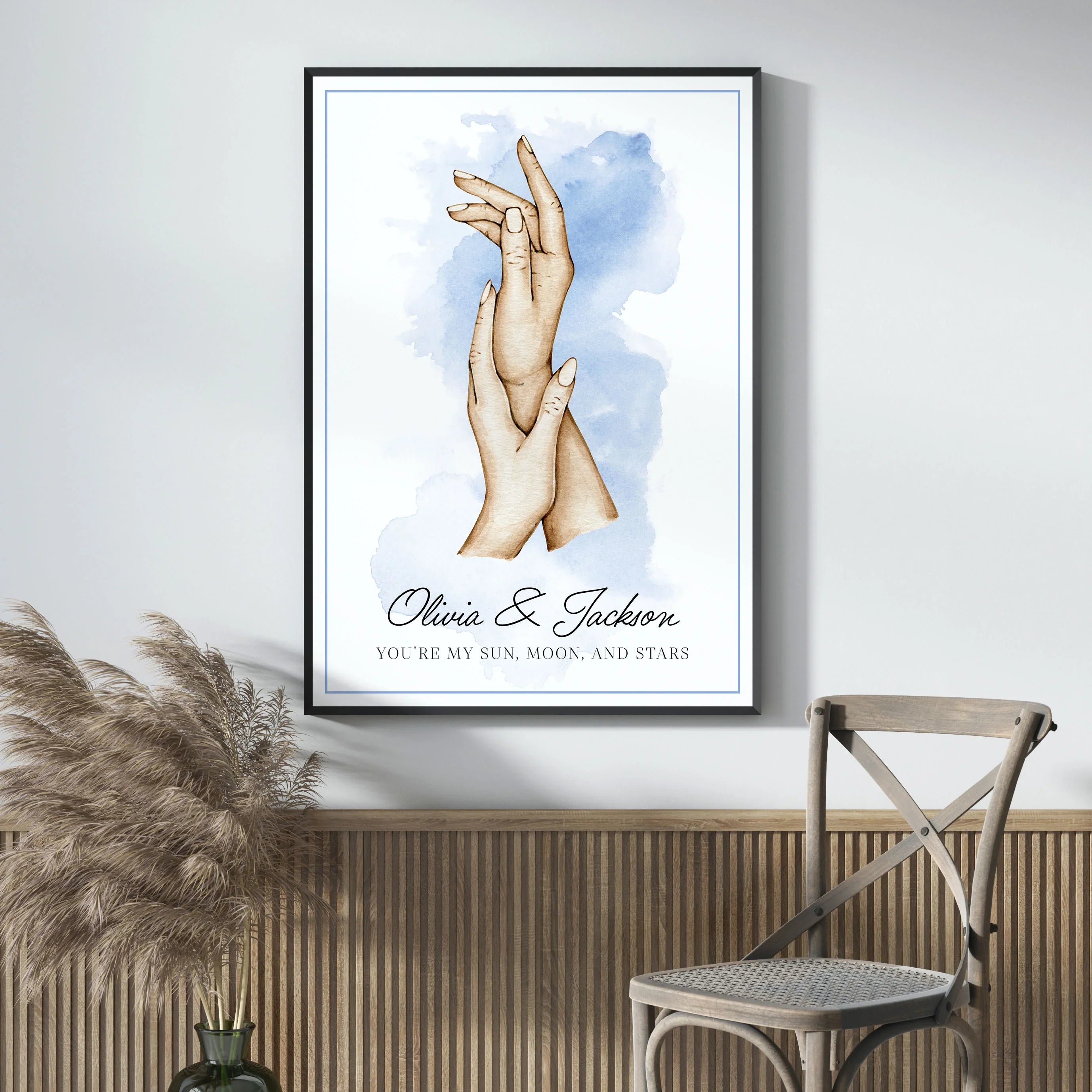 Introducing our custom poster with hands —a unique and heartfelt way to commemorate love, family, and the bond between partners. Our customizable posters feature the silhouette of hands, symbolizing unity and connection, with the flexibility for our customers to tailor every detail to their liking.