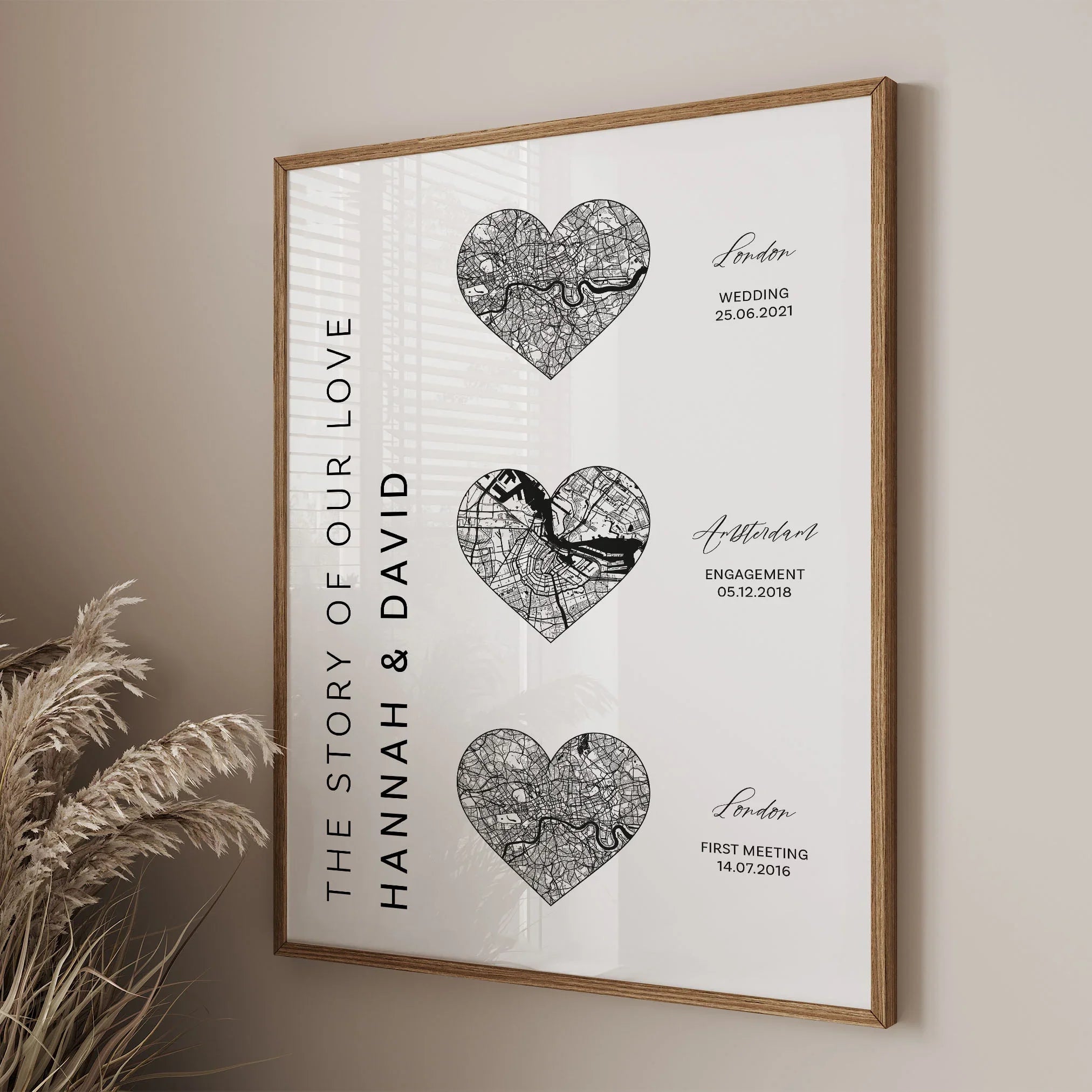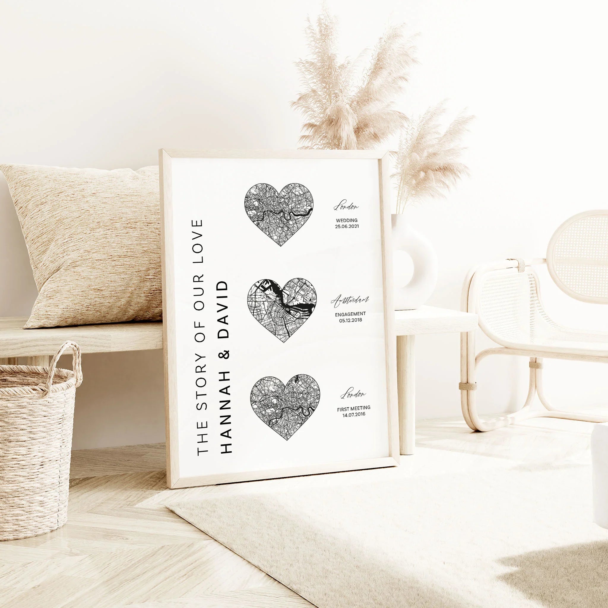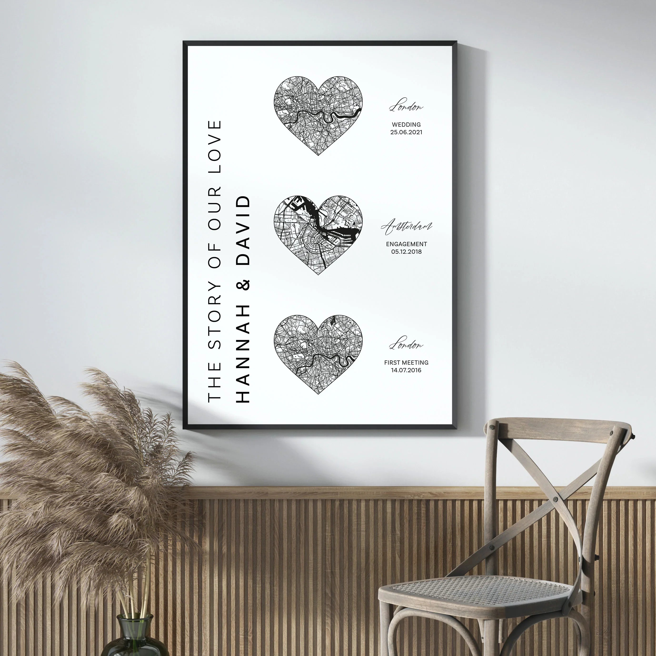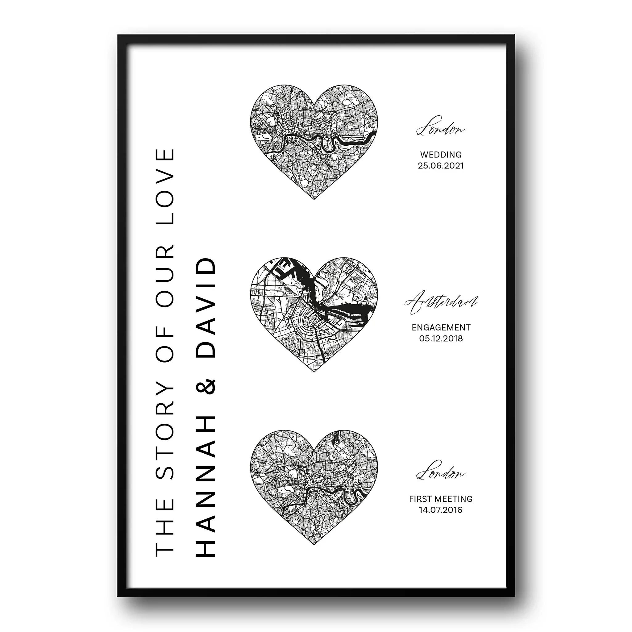 Our stylish prints are the perfect addition to wall decorations in your bedroom, living room, office, hall or virtually any room in your home as a great Valentine's Day, anniversary or other occasion gift for that special someone. Simply choose your own location for a 100% custom design at no additional cost.