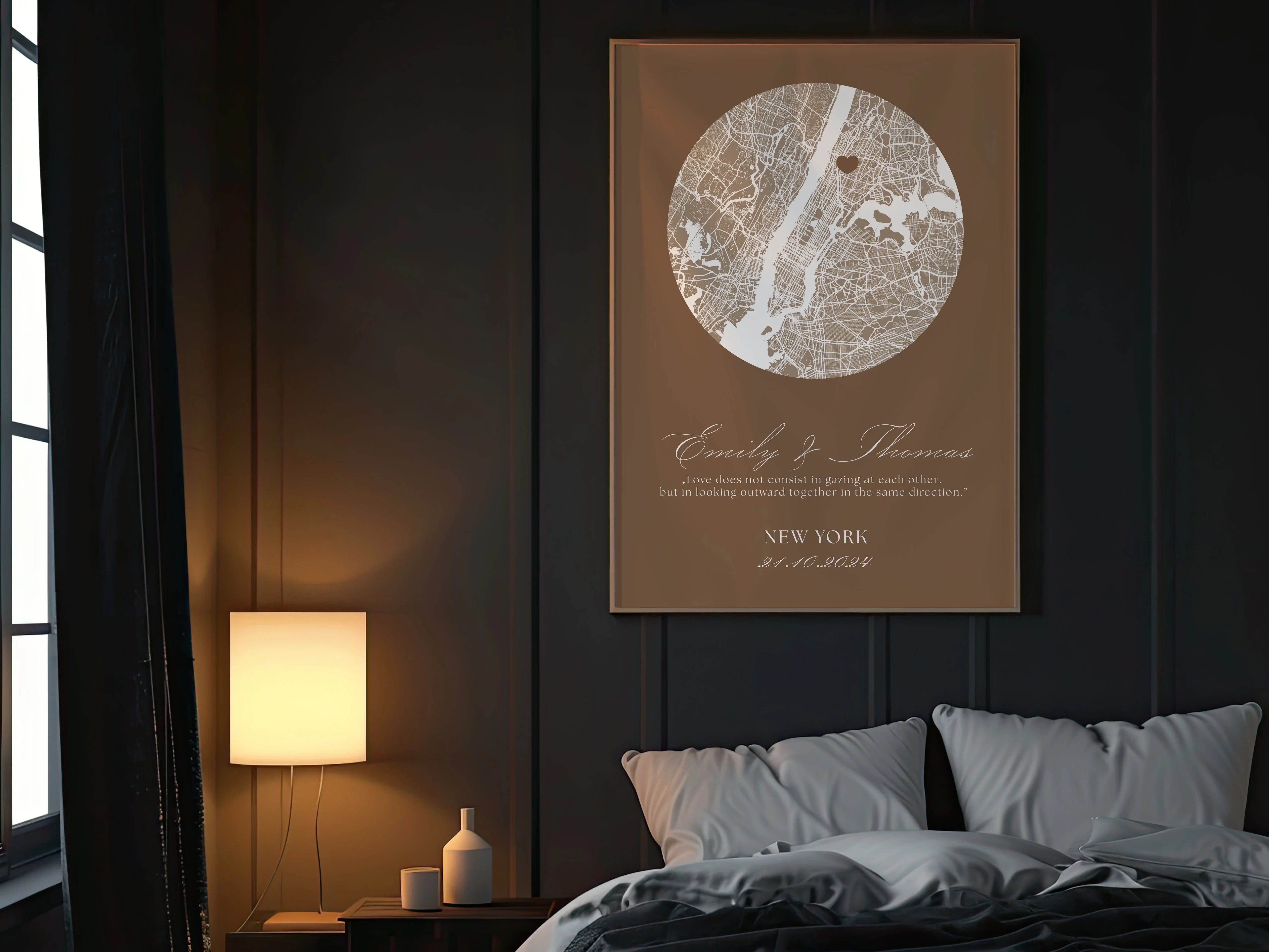 Our stylish prints are the perfect addition to wall decorations in your bedroom, living room, office, hall or virtually any room in your home as a great Valentine's Day, anniversary or other occasion gift for that special someone. Simply choose your own location for a 100% custom design at no additional cost.