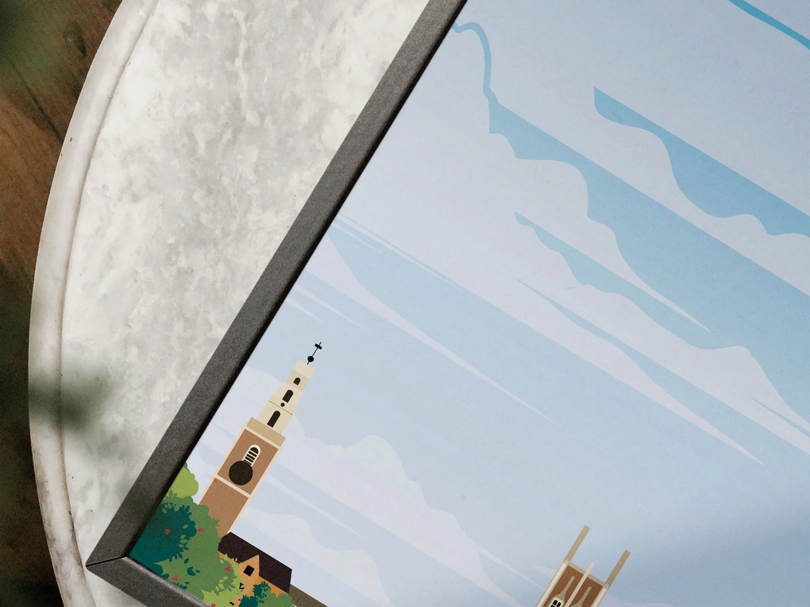 Travel-inspired city posters offer a softer, more atmospheric approach. These designs balance narrative and mood while remaining interior-focused and visually restrained.