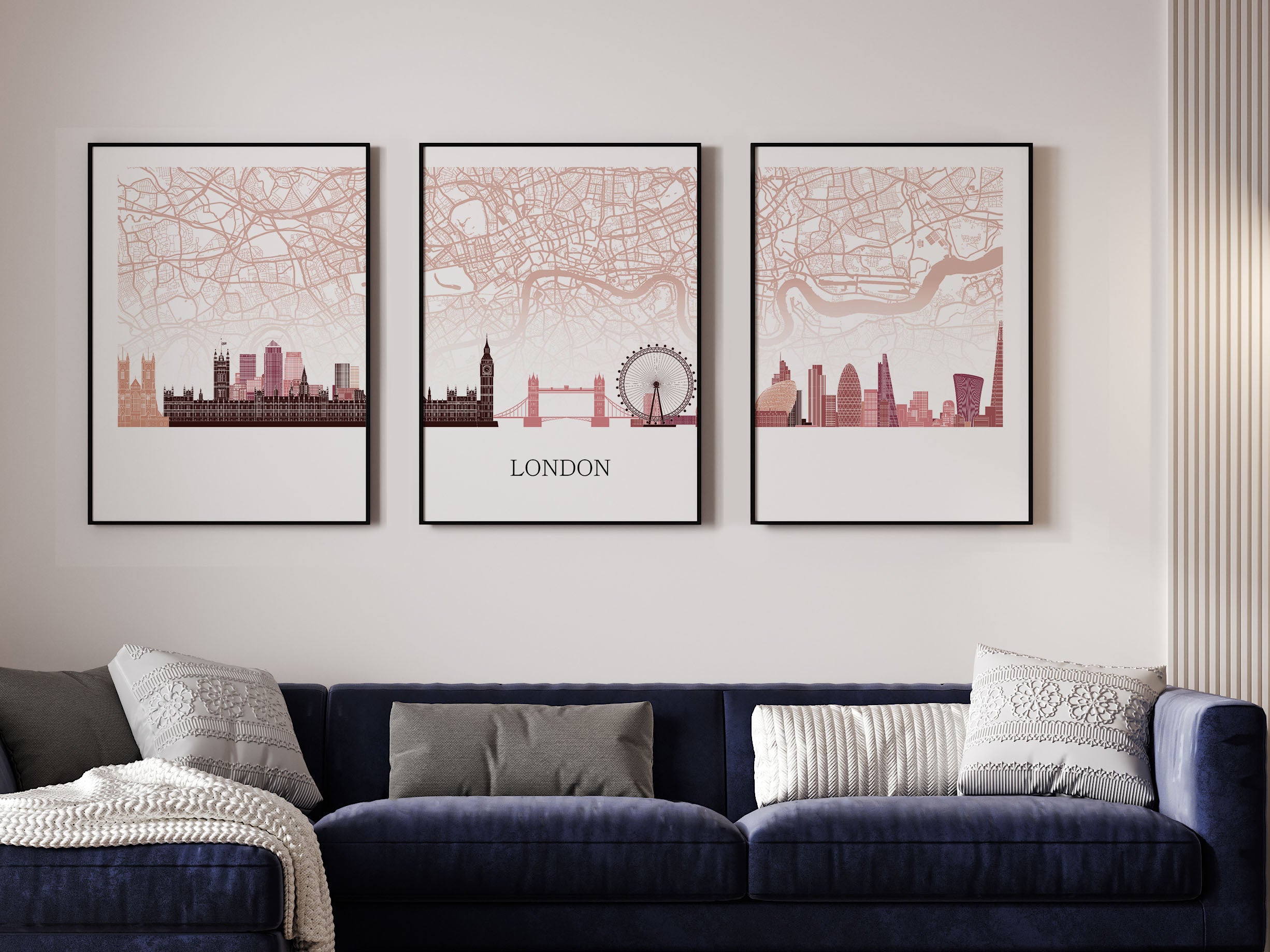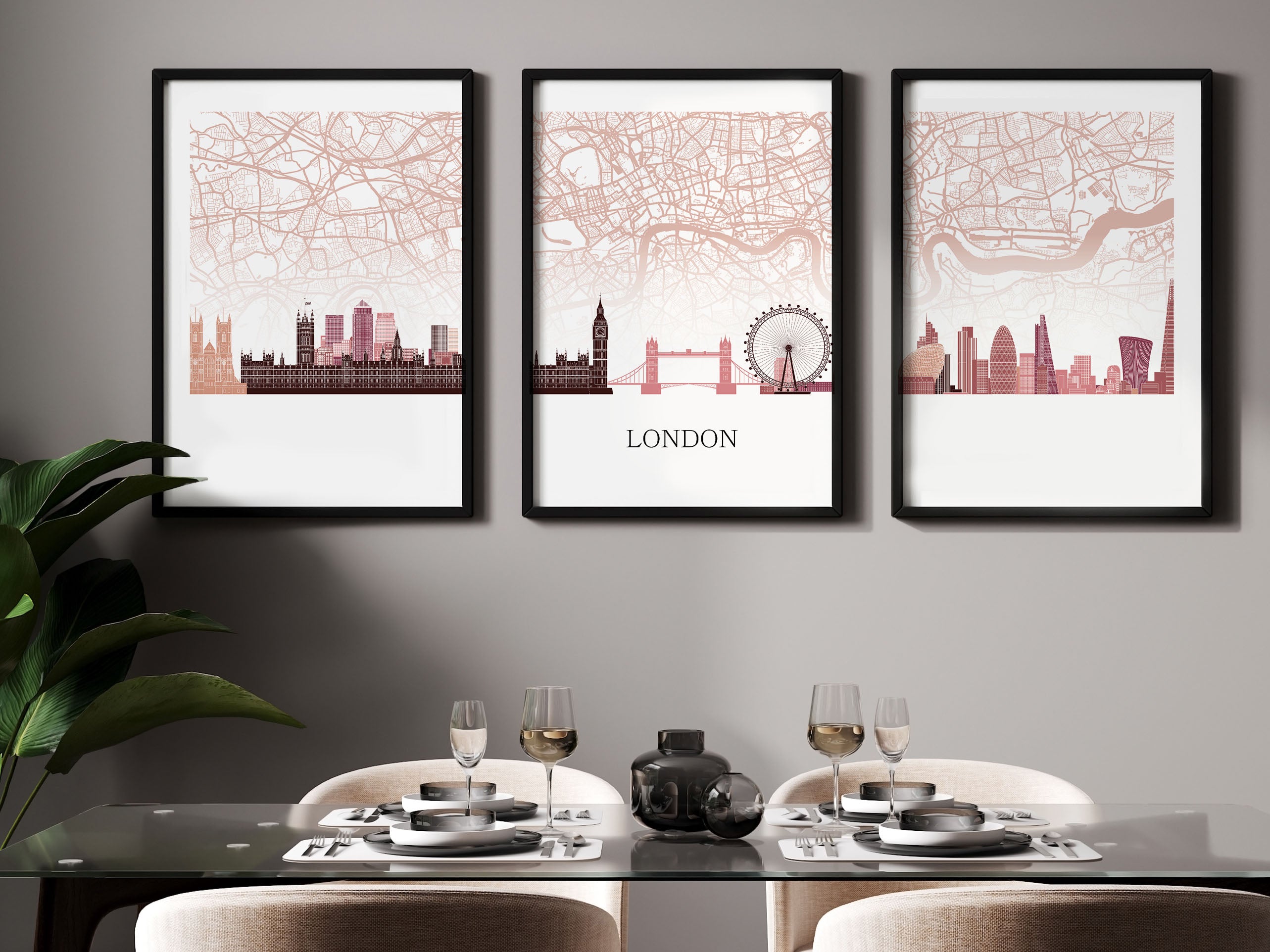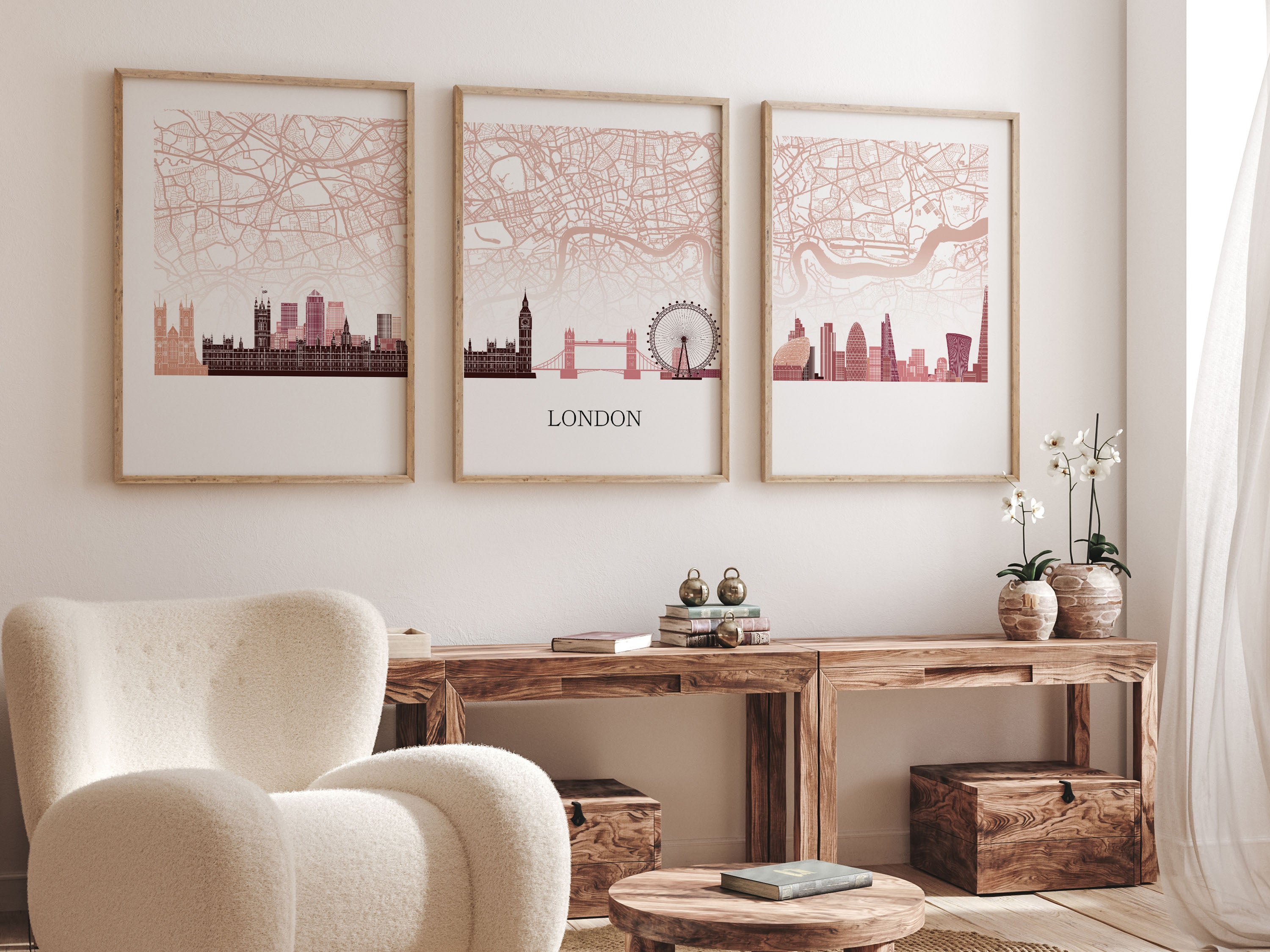 London Silhouette Triptych – Minimalist Wall Art