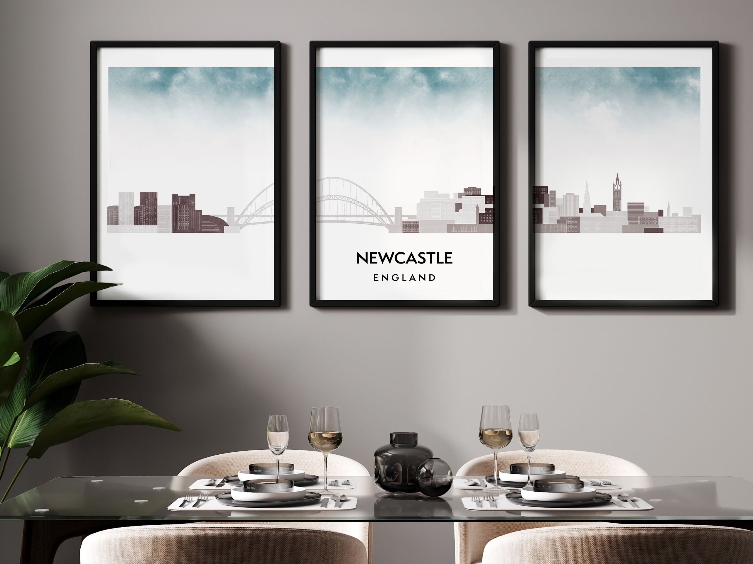 Artistic Newcastle Silhouette Triptych in Watercolor Style, Newcastle Skyline Poster, Newcastle Set of 3 Posters Poster for Living Room - Iconic Landmark Series - Perfect for Interior Design Enthusiasts - Inspired by the City's Essence
