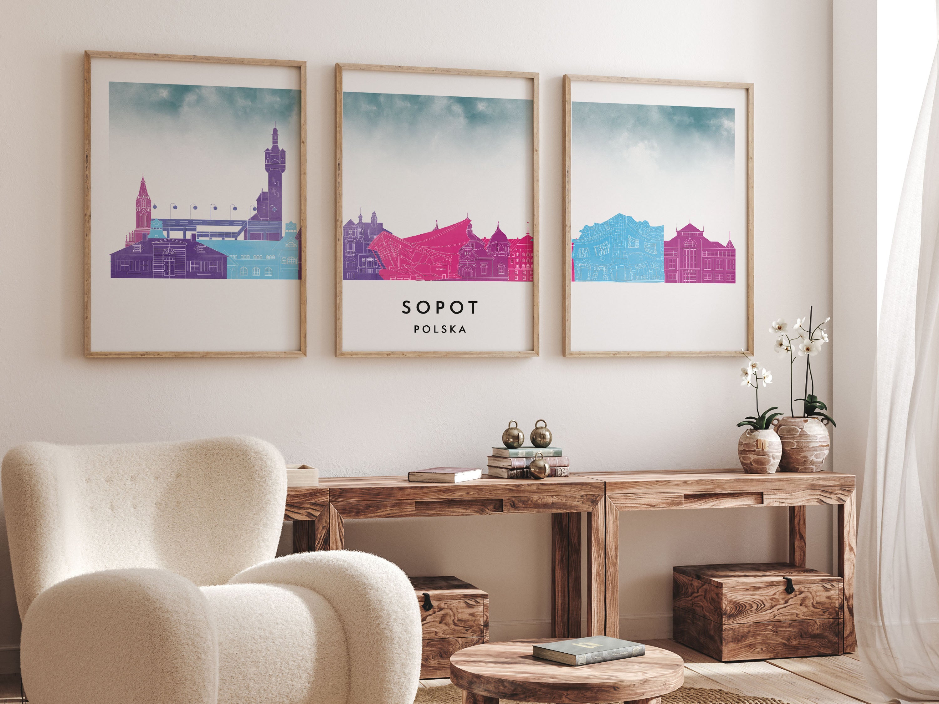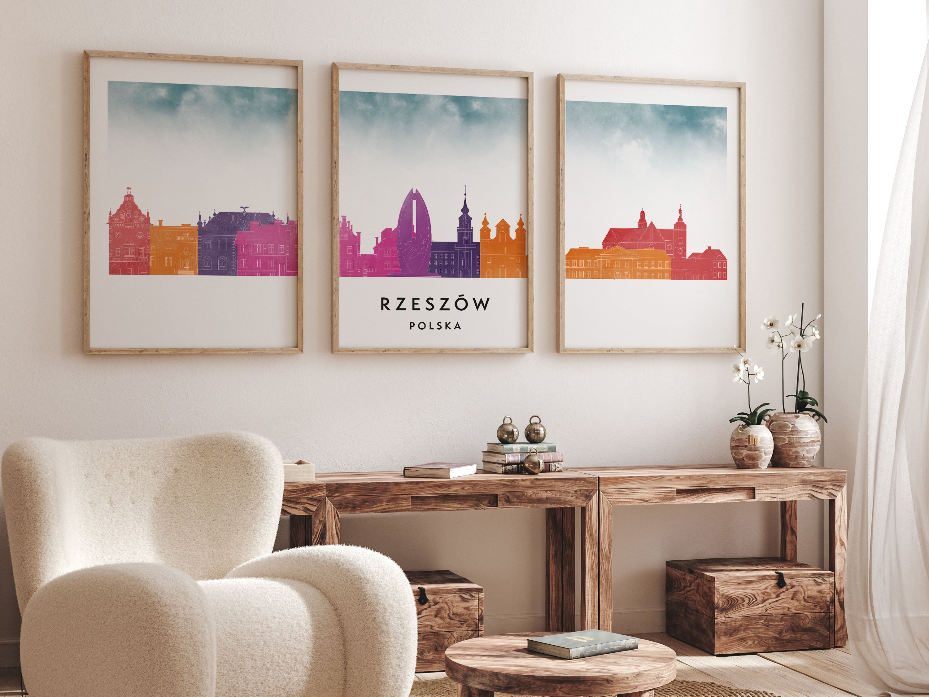 Elevate your decor with our watercolor skyline triptych collection – a series of three-panel posters featuring iconic cityscapes in artistic watercolor style. Each triptych set brings a splash of color and urban charm, making it ideal for wide wall spaces or above-sofa displays. From London’s skyline in sunset hues to New York’s silhouette in cool blues, these posters turn city skylines into watercolor masterpieces. Printed on premium matte paper, our skyline triptychs deliver gallery-quality visuals that transform your living room or office into a cosmopolitan gallery.