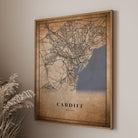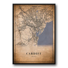 Cardiff, UK Vintage Style Map Pos