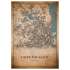Copenhagen, Denmark Vintage Style Map Poster