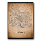 Ipswich, UK Vintage Style Map Pos