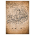 Sarajevo, Bosnia&Herzegovina Vintage Style Map Poster