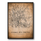Stoke On Trent, UK Vintage Style Map Pos