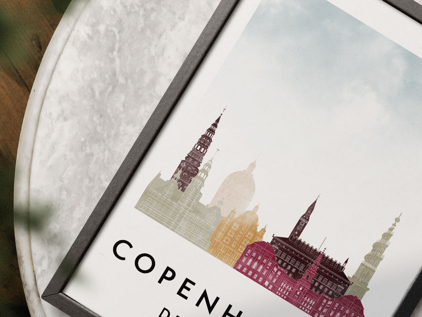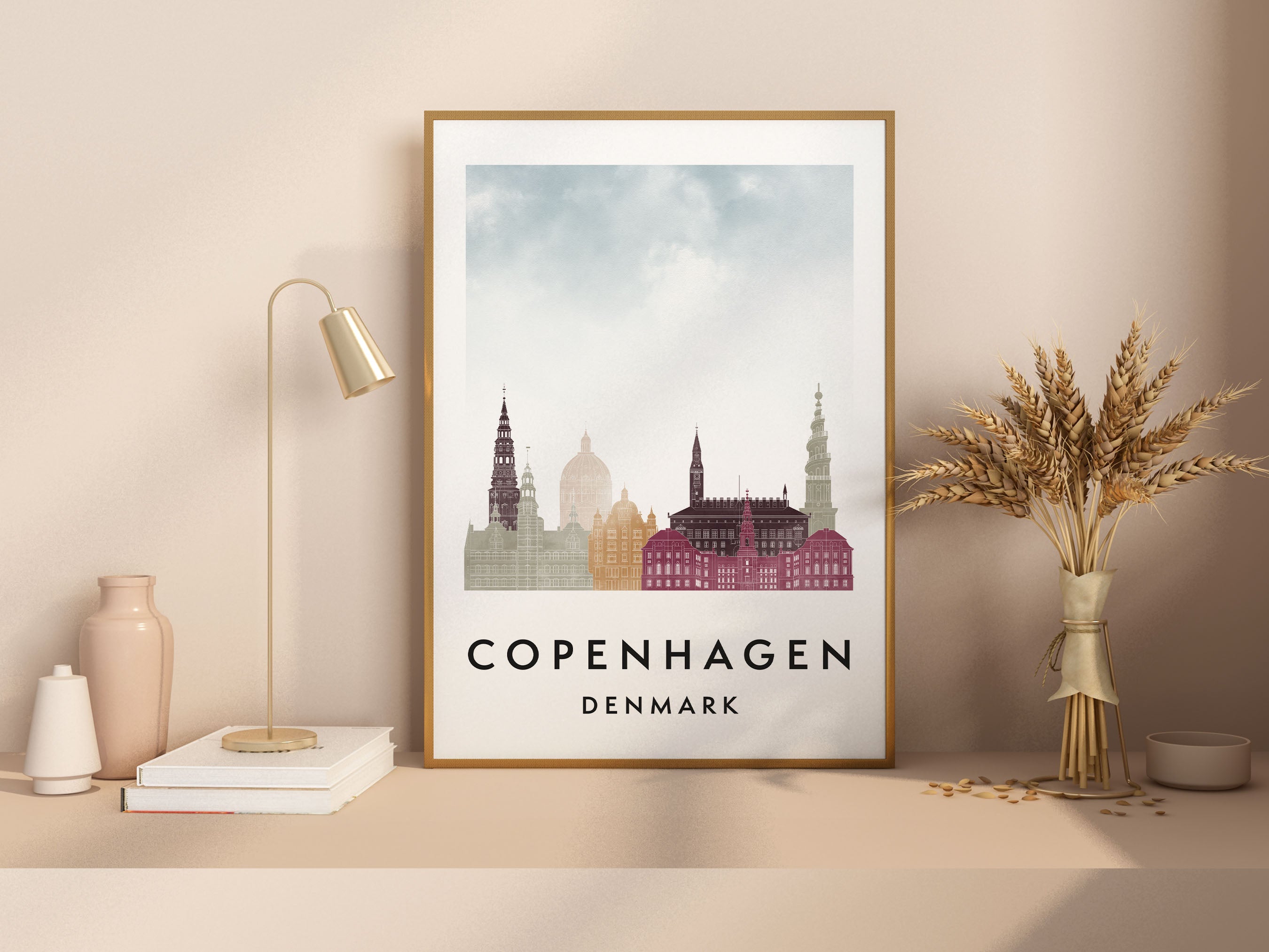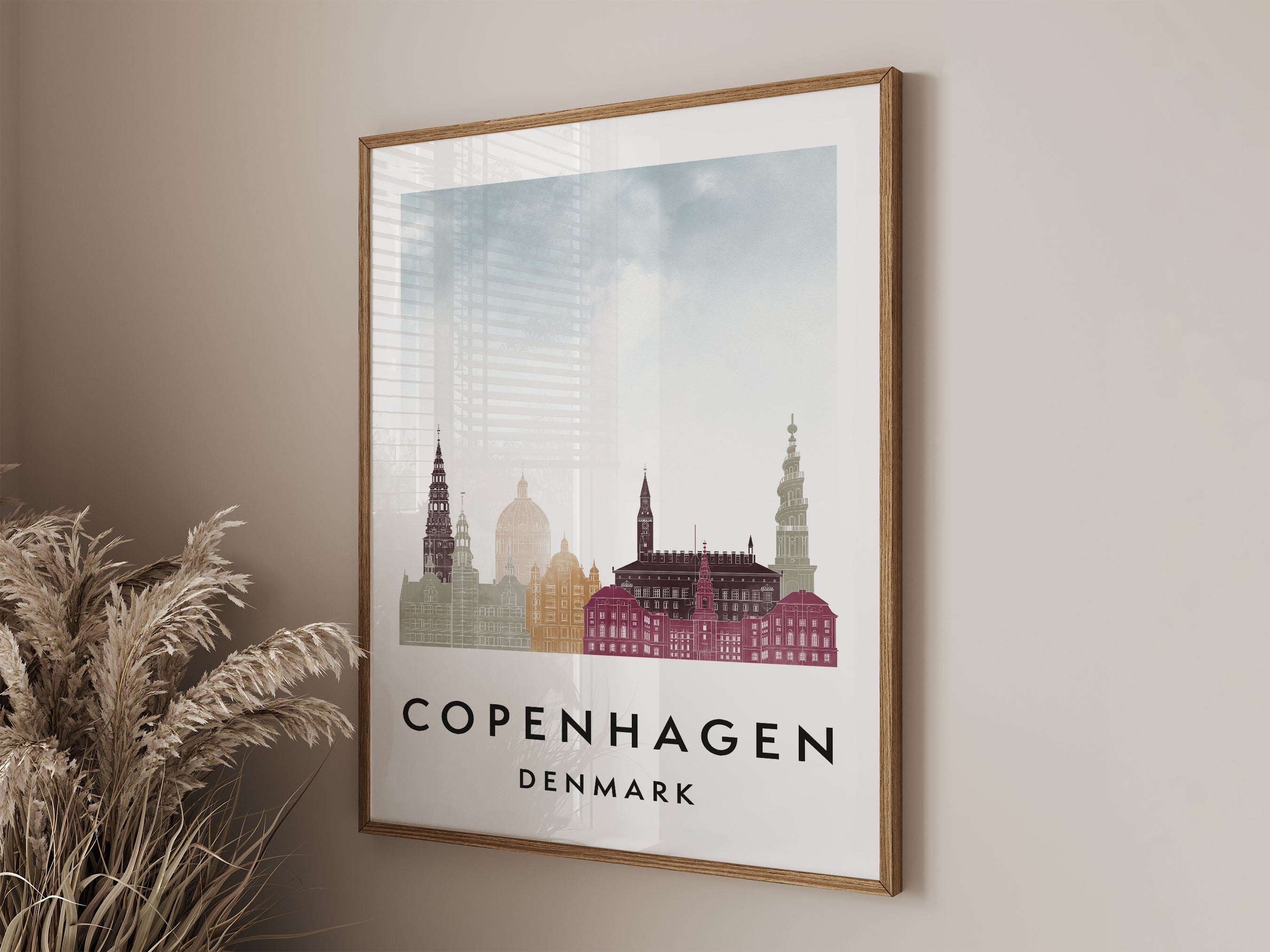 Copenhagen Skylines Poster, Watercolor style Skylines Poster