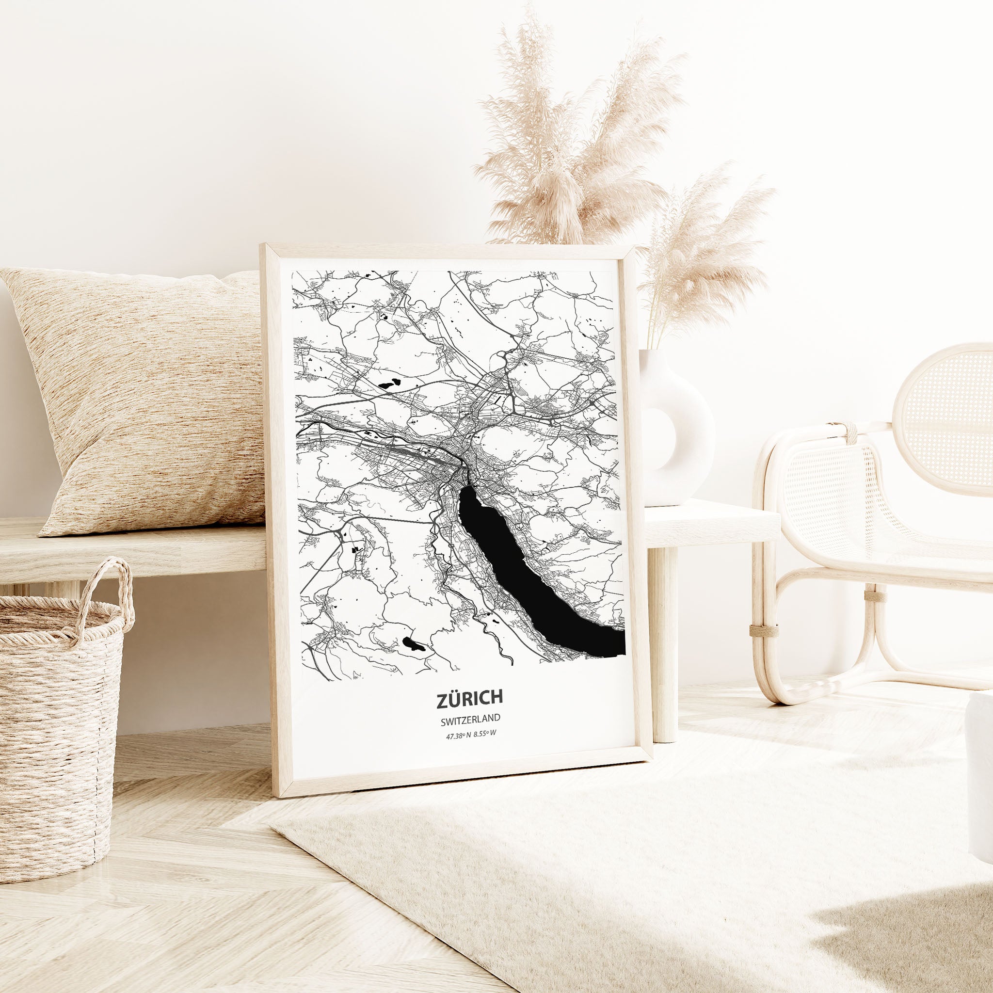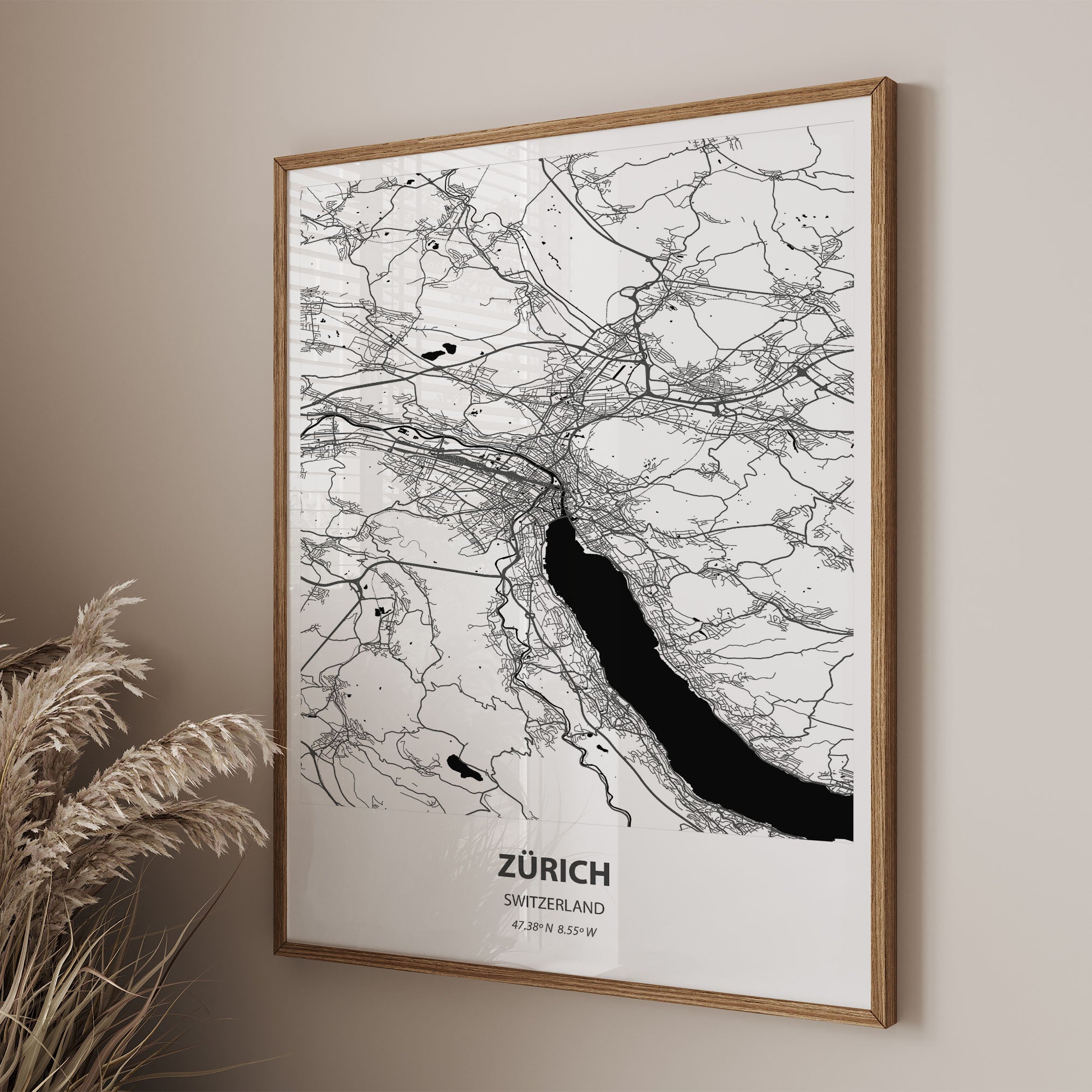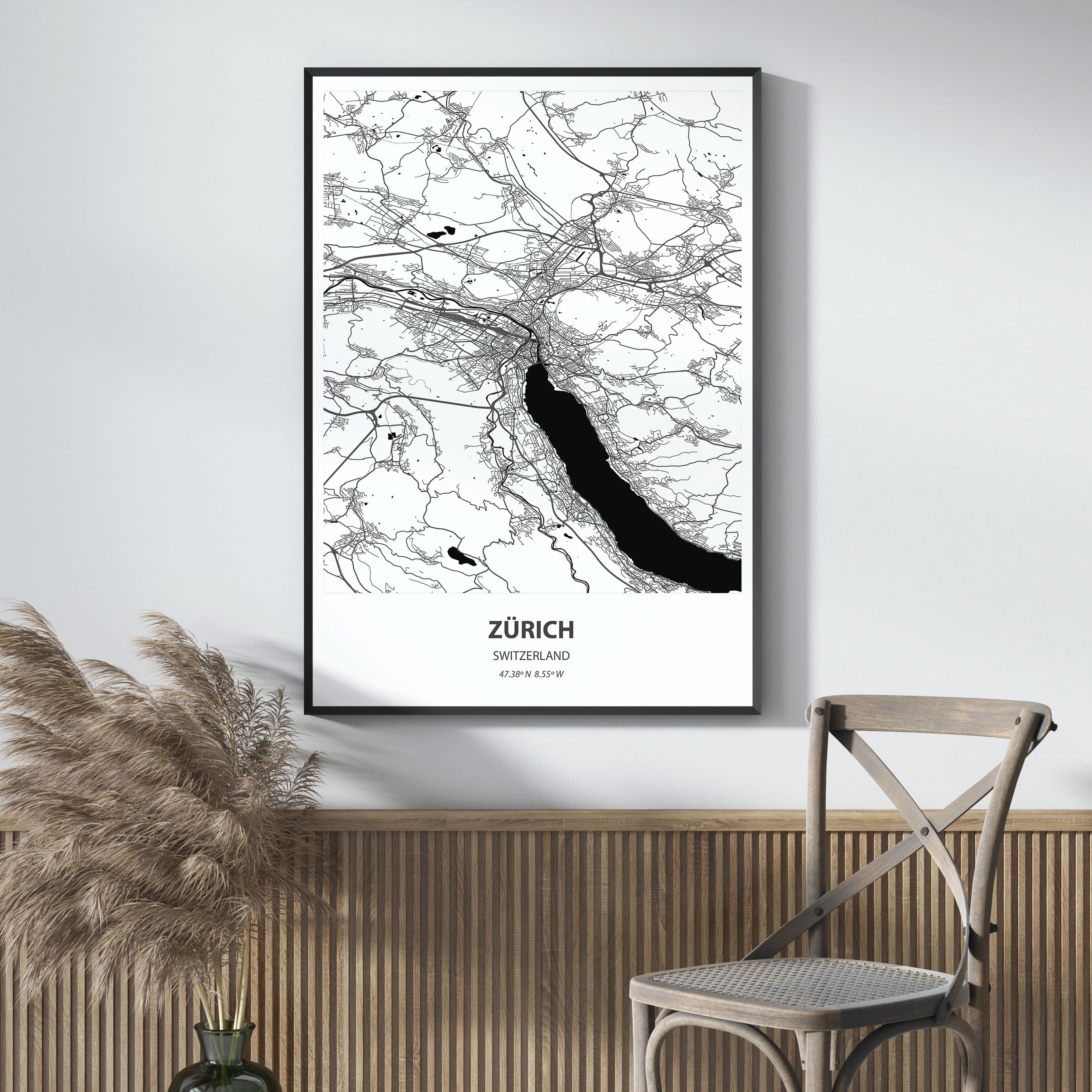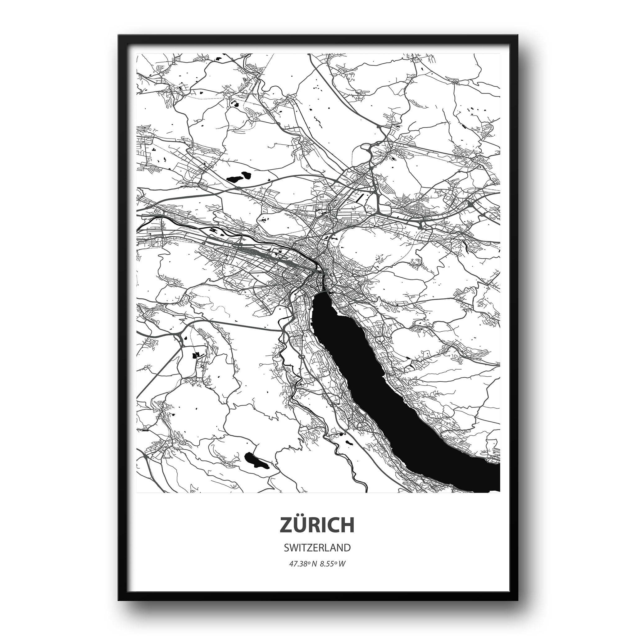 - Minimalist design: A detailed black and white city map perfect for contemporary interiors.