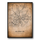 Oldham, UK Vintage Style Map Pos