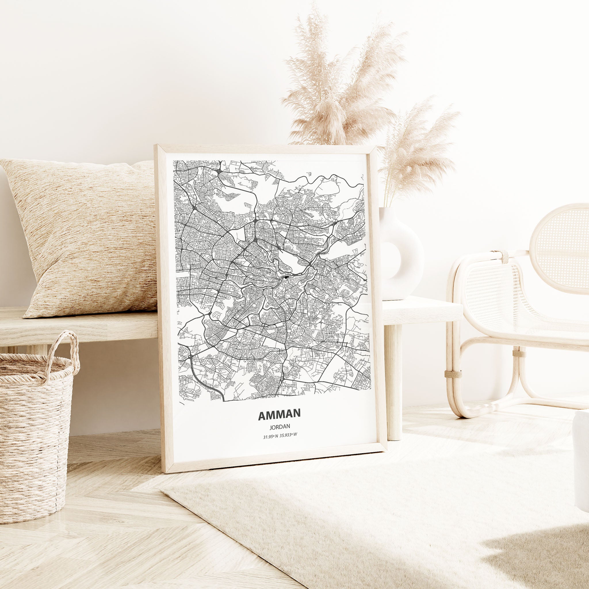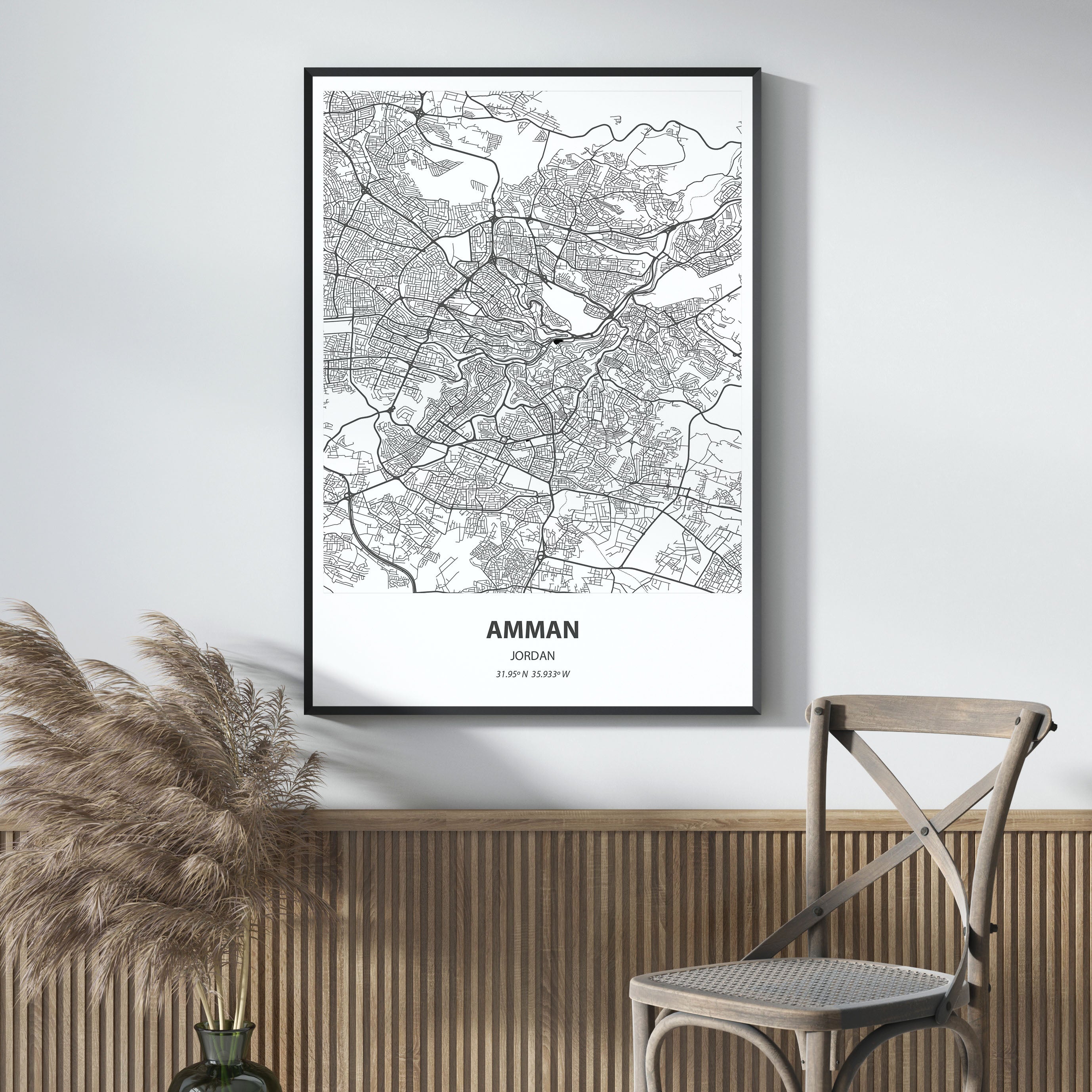 • Minimalist design: A detailed black and white city map perfect for contemporary interiors.