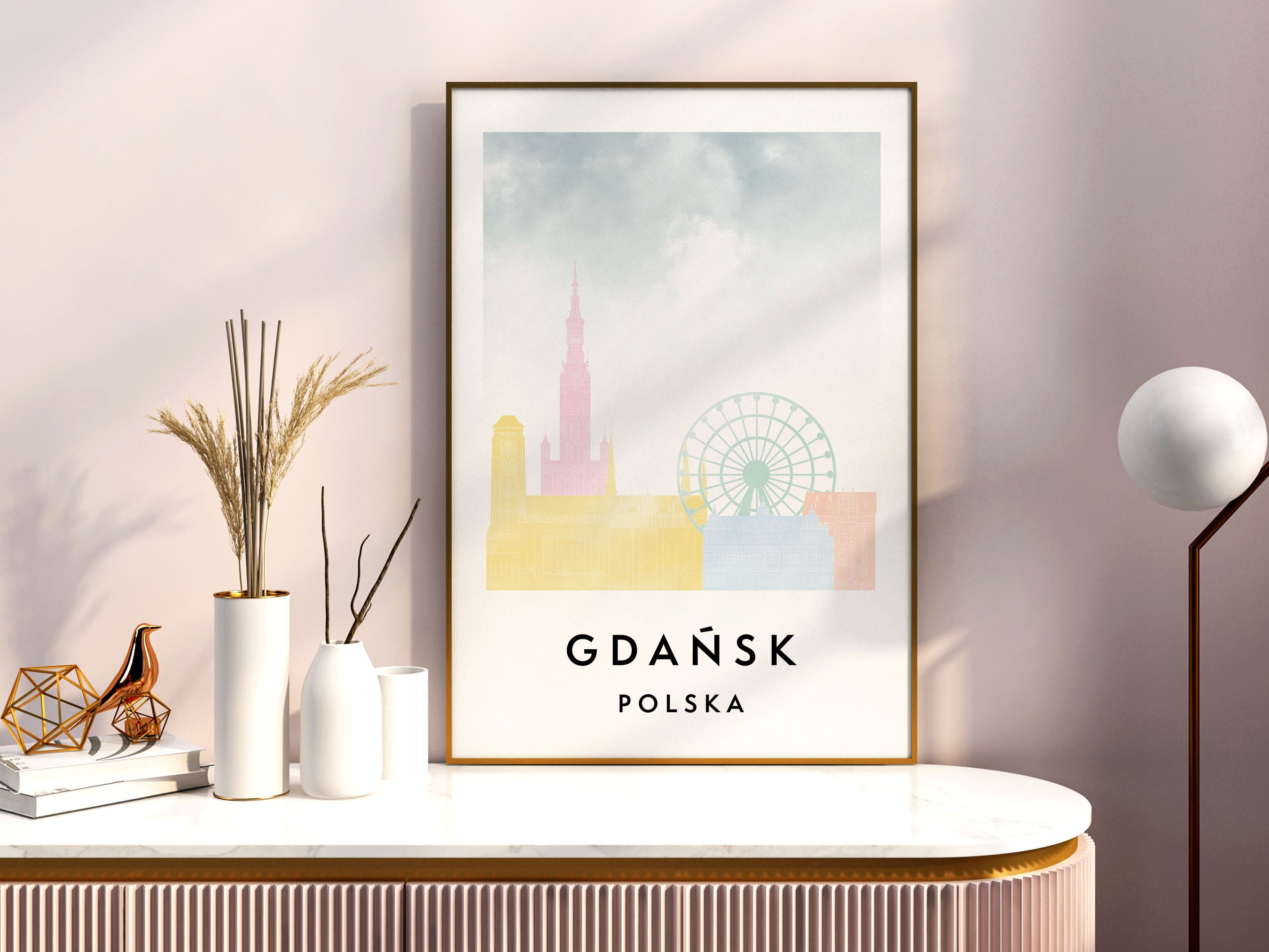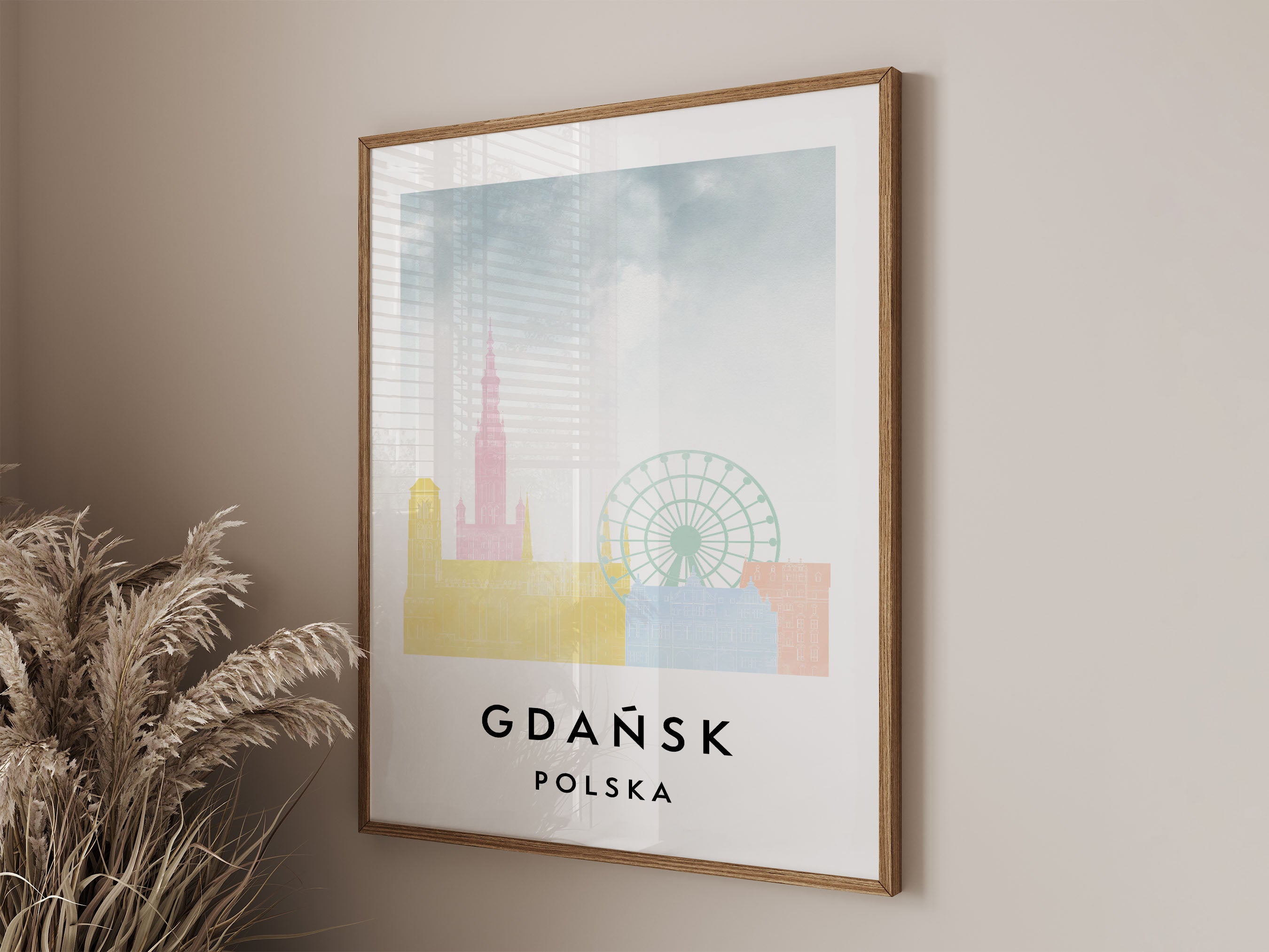 Gdansk Skylines Poster, Watercolor style Skylines Poster