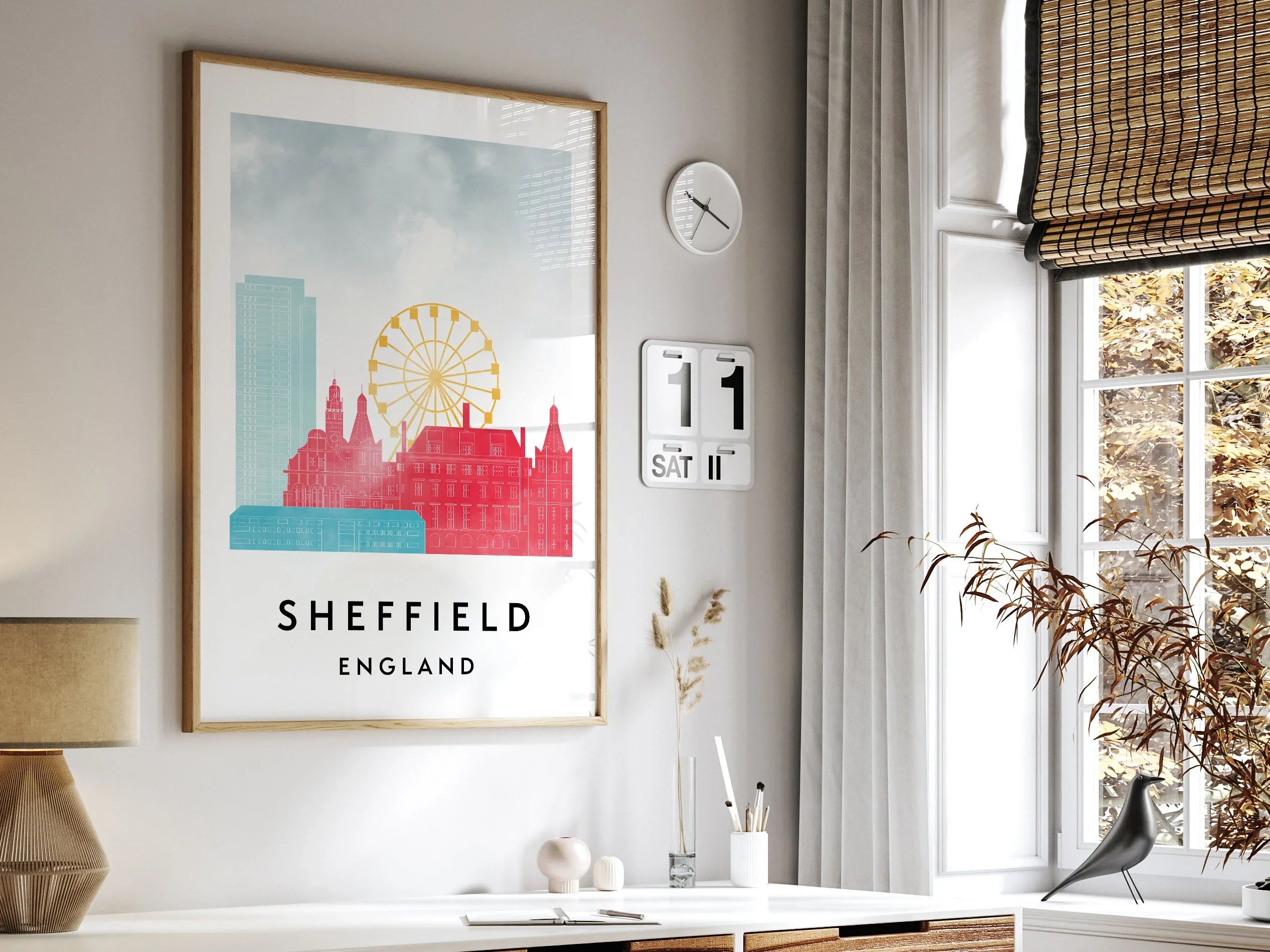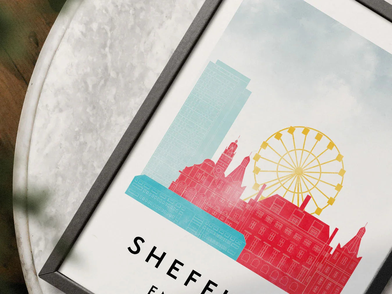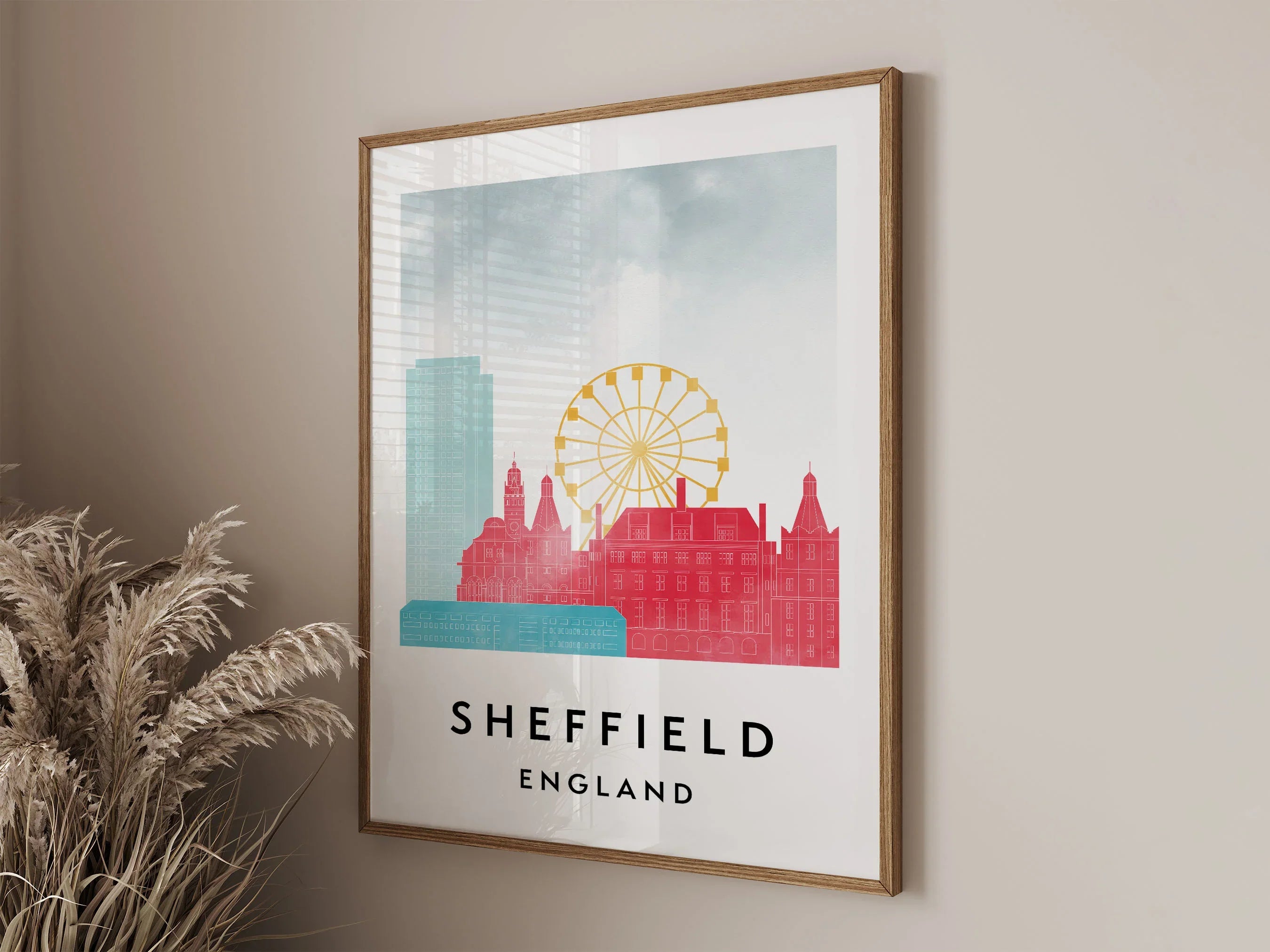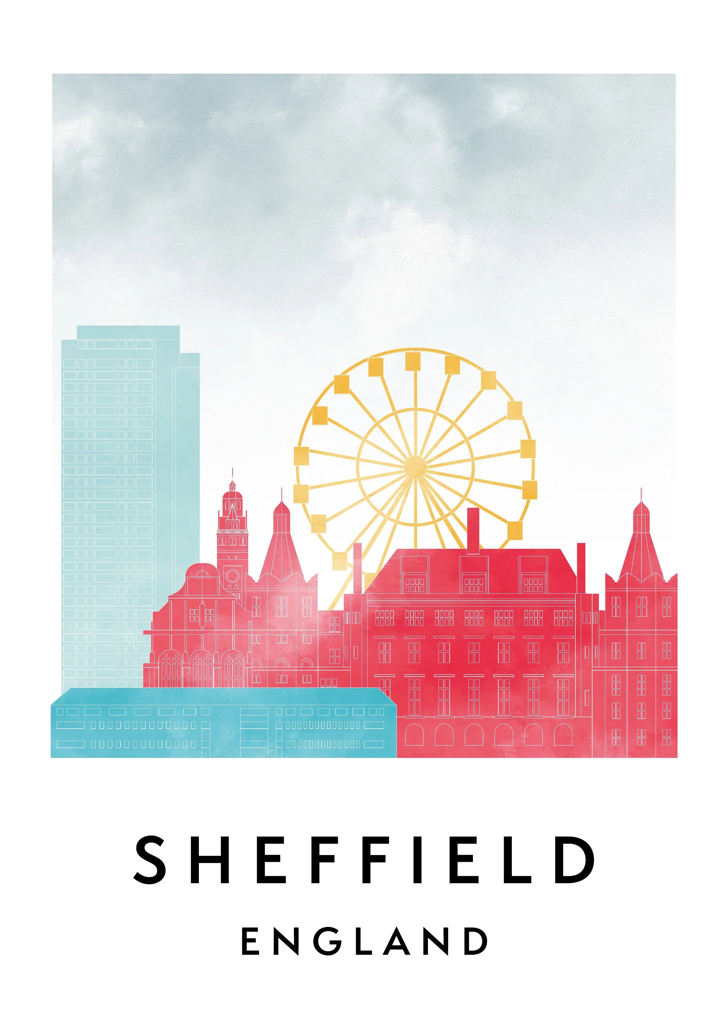 Sheffield Skylines Poster, Watercolor style Skylines Poster
