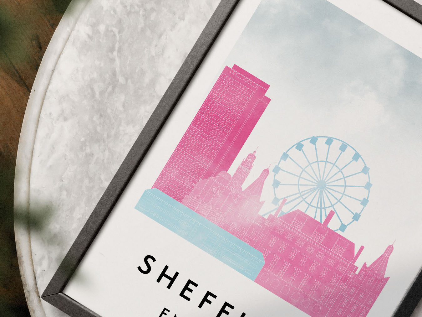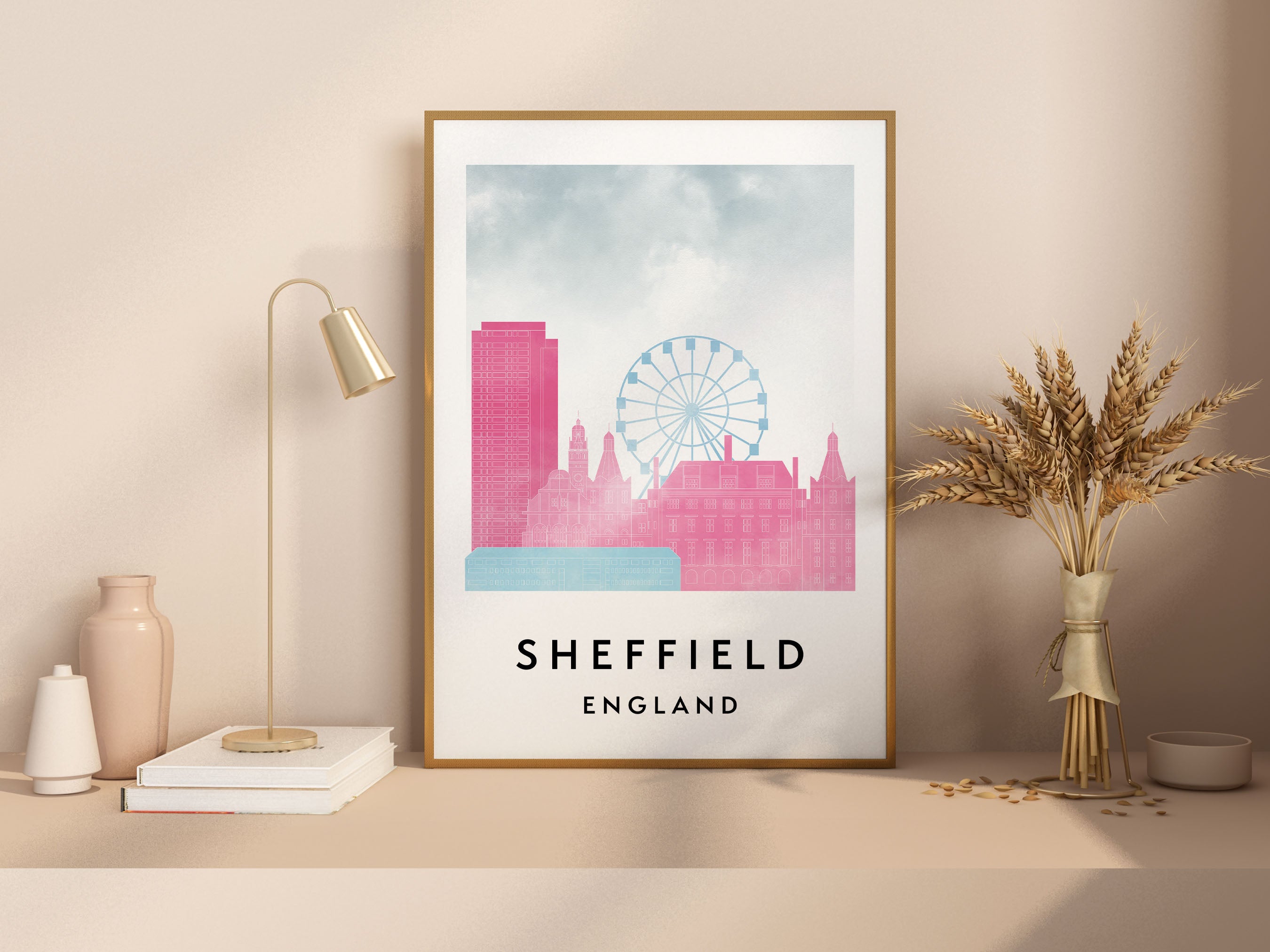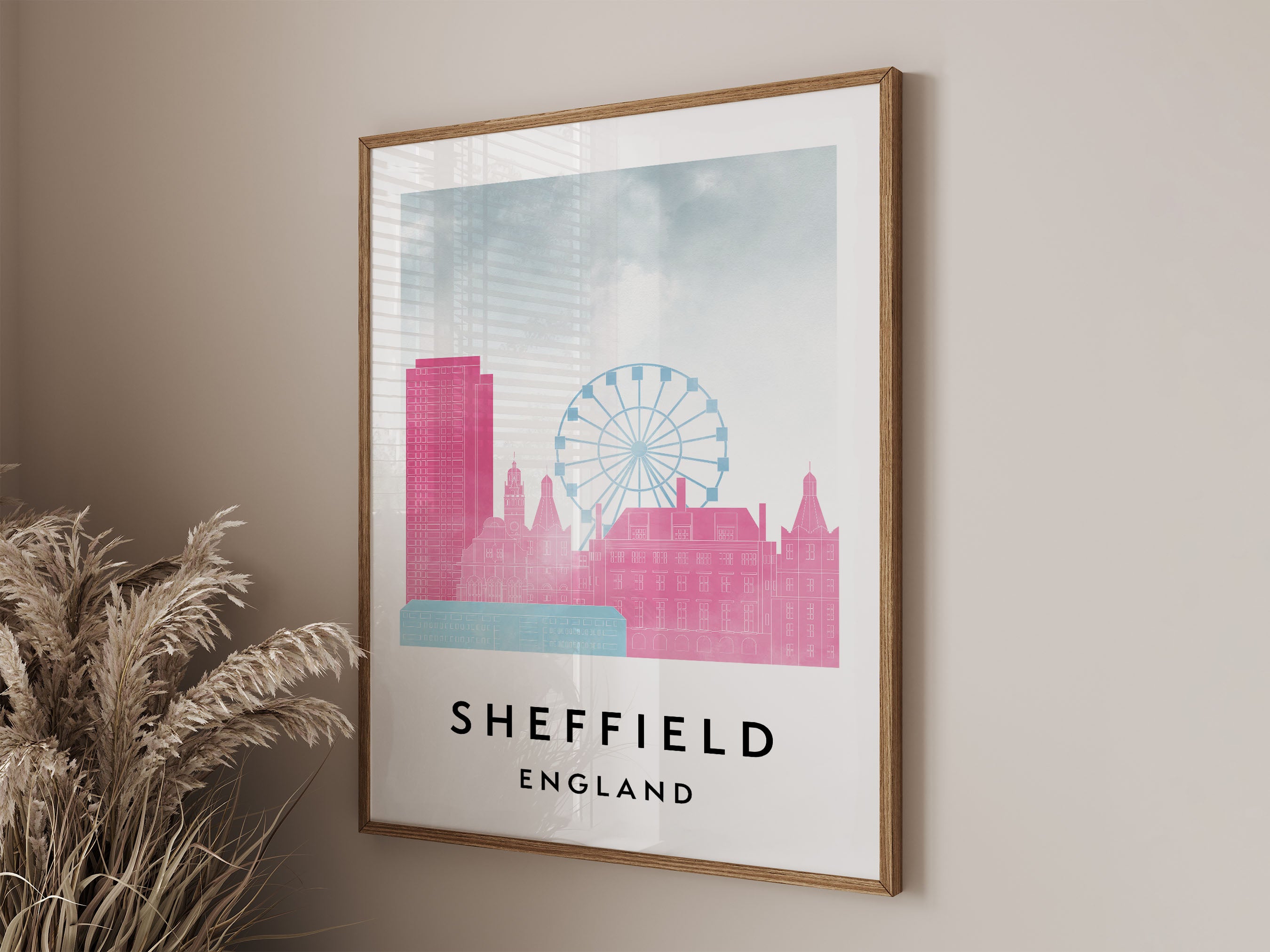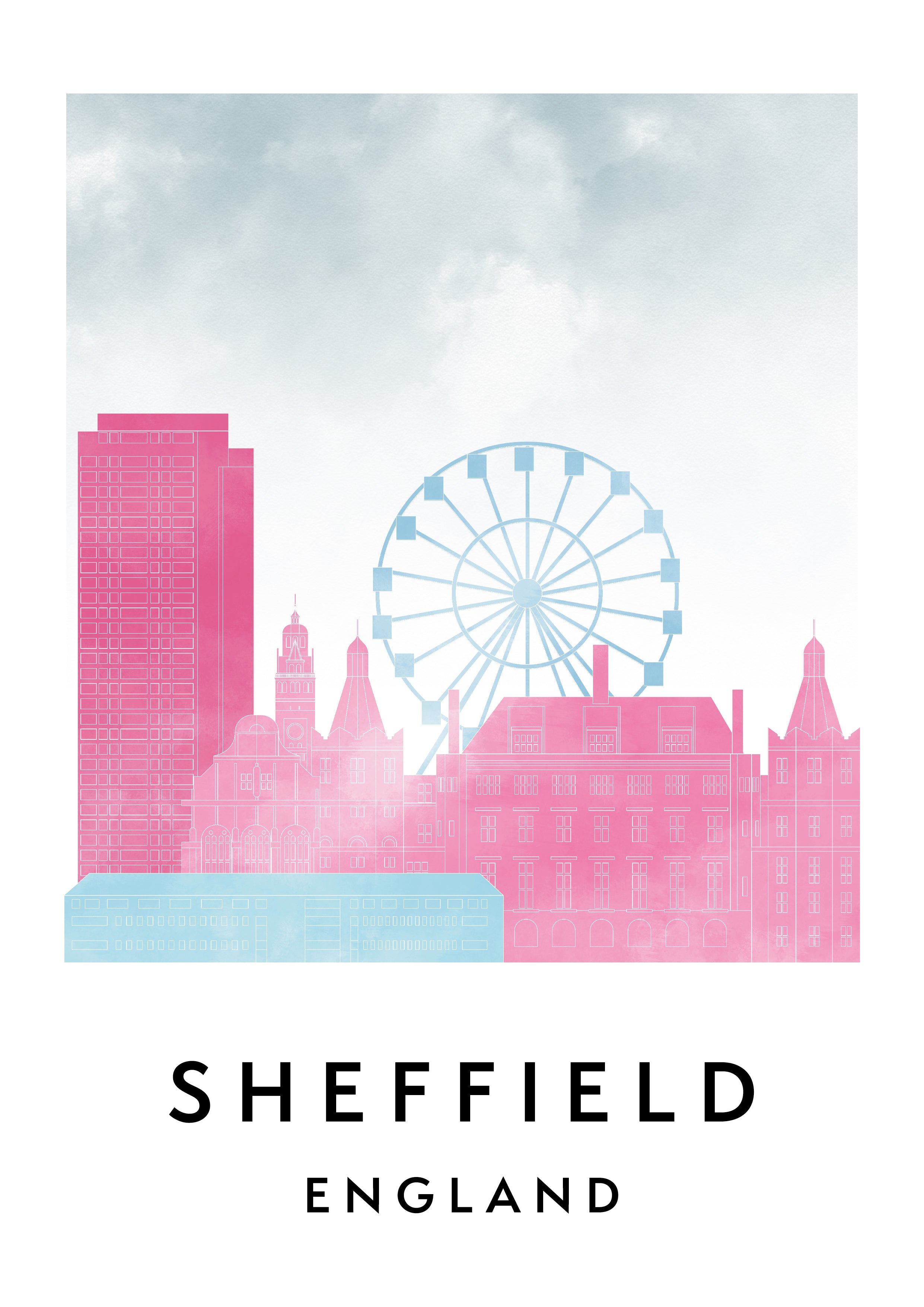 Sheffield Skylines Poster, Watercolor style Skylines Poster
